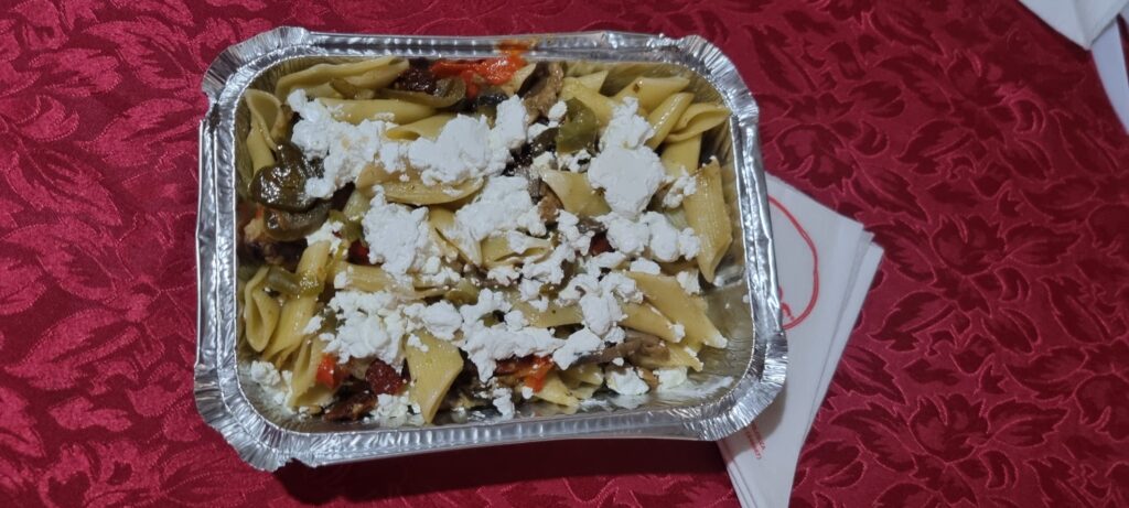 This was my veggie lunch for today – takeaway pasta called Mariannas from Mimmo’s, a delightful Italian restaurant at Pavilion, Durban. My choice of serving was the penne with a dash of olive oil and garlic, with sundried tomatoes, pickled jalapenos, roasted peppers & brinjals (aubergine/eggplant) mushrooms with feta. The saltiness of the chewy sundried tomatoes in my pasta takes it to another level and I love it!